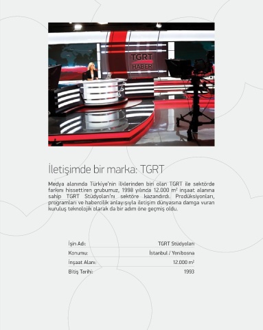 Birçok projeyi başarıyla gerçekleştirmiş bir kurum olarak kalite ve İşin Adı: TGRT Stüdyoları